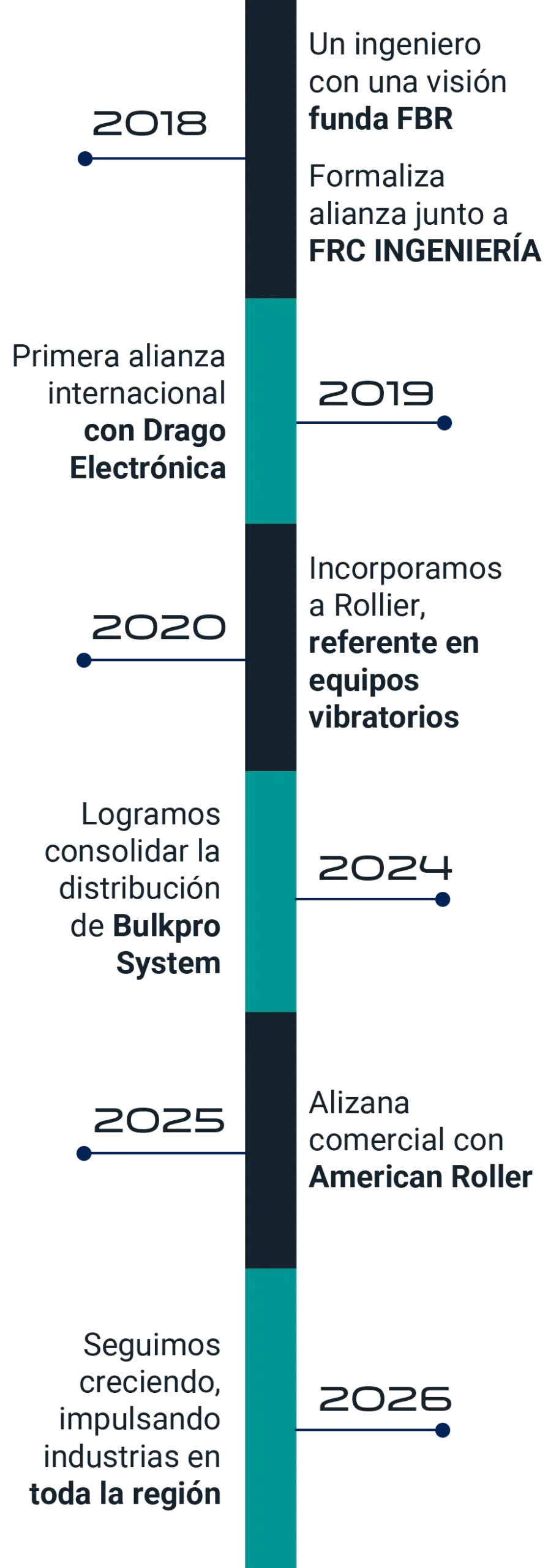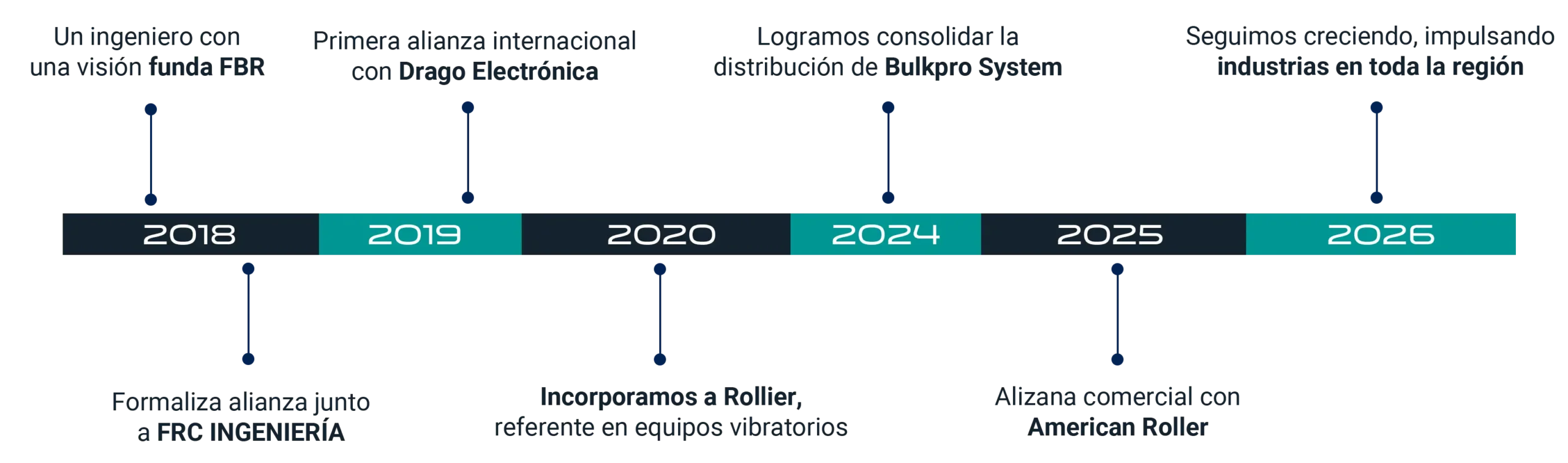 Desde ese primer día, crecimos junto a aliados estratégicos como FRC Ingeniería, Drago Electrónica, Rollier, Bulk Pro y Capotex, quienes compartieron nuestra visión de entregar soluciones confiables y de alta calidad. Juntos, hemos logrado llevar a nuestros clientes soluciones personalizadas que han hecho la diferencia, consolidándonos como un referente en el sector.